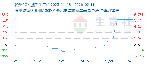 2月6日生意社涤纶POY基准价为7150.00元/吨